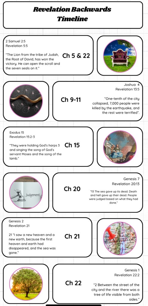 Revelation and It’s Backwards Timeline Teaching SeriesSabbath Lounge Teaching Series Sabbath Lounge InterviewsA collection of interviews from Sabbath Lounge.Yeshua is SalvationYeshua is SalvationRevelationRevelation HomeRevelation TimelineThrone Room Ch. 4The Scroll Ch. 5Six Seals Ch. 6144,0000 Ch. 7Seventh Seal Ch. 8Trumpets Blown Ch. 9Angel and the Little Book Ch. 10Two Witnesses Ch. 11Woman with Child and the Dragon, Ch 12Beast From the Sea Ch. 13The Lamb and Mont Zion Ch. 14Proclaiming the Bowl Judgments Ch. 15The Seven Bowls of Wrath Ch. 16The Woman and The Scarlet Beast Ch. 17Babylon’s Fall and Lamentation – Revelation Chapter 18Rejoicing Over Babylon’s Fall Chapter-19Satan’s Imprisonment Chapter 20New Jerusalem- Chapter 21The River and the Tree of Life- Chapter 22The River and the Tree of Life- Chapter 22Daniel, Ezekiel, JobEzekiel to RevelationHow does Ezekiel point to Revelation? EzekielEzekiel 1Ezekiel 2Ezekiel 3Ezekiel 4 “Revelation Series by Sabbath Lounge”, Sabbath Lounge Revelation Series, Image courtesy a paid canva account. Revelation Sabbath Lounge Revelation TimeDownload Share this: Click to share on X (Opens in new window) X Click to share on Facebook (Opens in new window) Facebook Click to email a link to a friend (Opens in new window) Email Click to share on Telegram (Opens in new window) Telegram More Click to share on Reddit (Opens in new window) Reddit Click to share on Tumblr (Opens in new window) Tumblr Click to share on LinkedIn (Opens in new window) LinkedIn Click to share on Pinterest (Opens in new window) Pinterest Like Loading... Related Leave a comment Cancel reply Δ